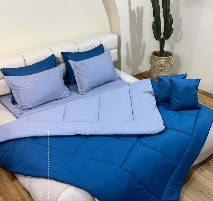 سرویس دو نفره شش تکه شامل : دو عدد رو بالشی 50*70 همچنین دو عدد رو کوسنی 40*40 , لحاف و کاور کشدار تشک است.