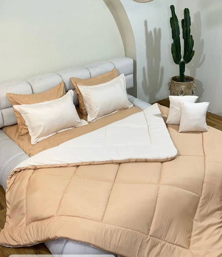 سرویس روتختی دو رنگ هتلی ساده رنگ (کرم -نسکافه ای)