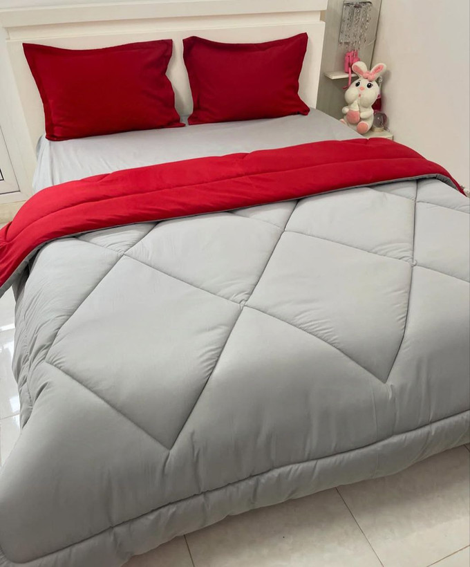 ست روتختی ساده هتلی تک نفره طوسی قرمز