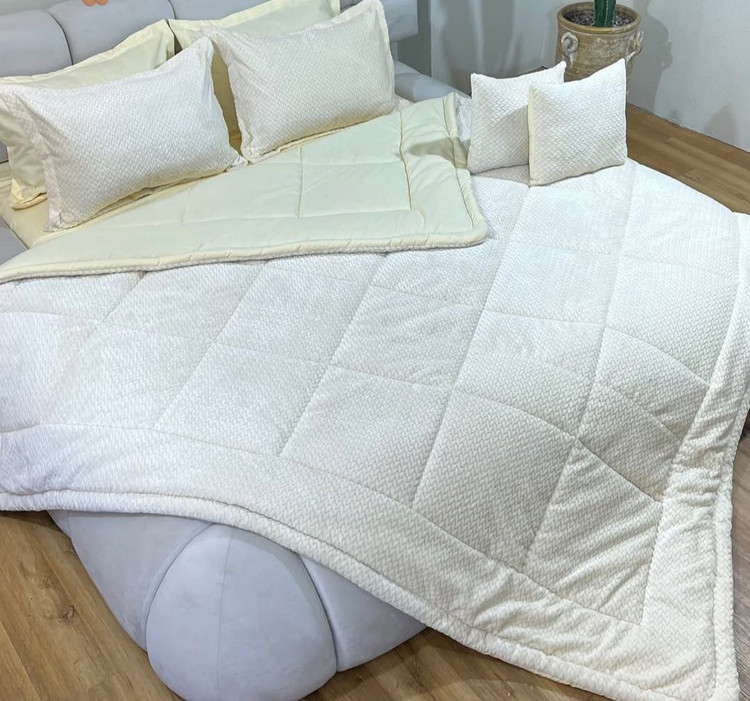 سرویس روتختی مخمل سوزنی دونفره رنگ سفید با زیره شیری