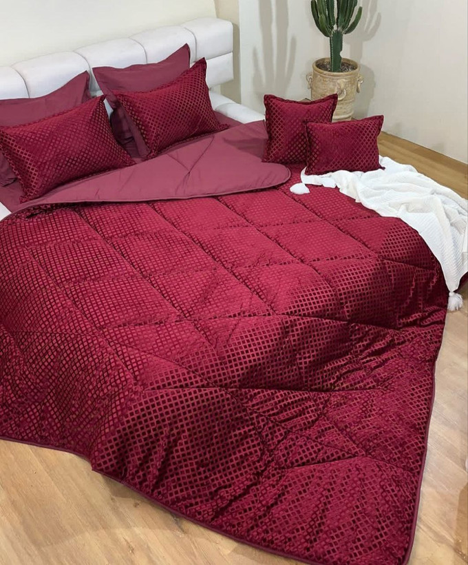 سرویس روتختی مخمل لانه زنبوری دو نفره به رنگ زرشکی
