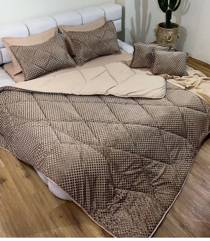 سرویس روتختی مخمل لانه زنبوری دو نفره به رنگ قهوه ای