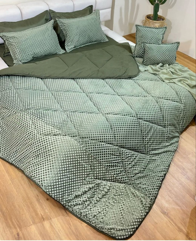 سرویس روتختی مخمل لانه زنبوری دو نفره به رنگ سبز پسته ای