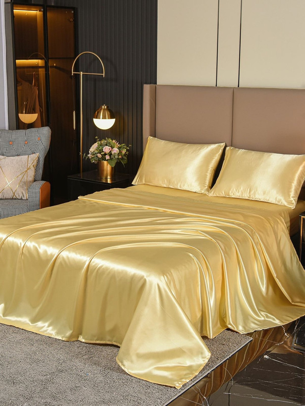 نیم ست روتختی ساتن ابریشم زرد طلایی