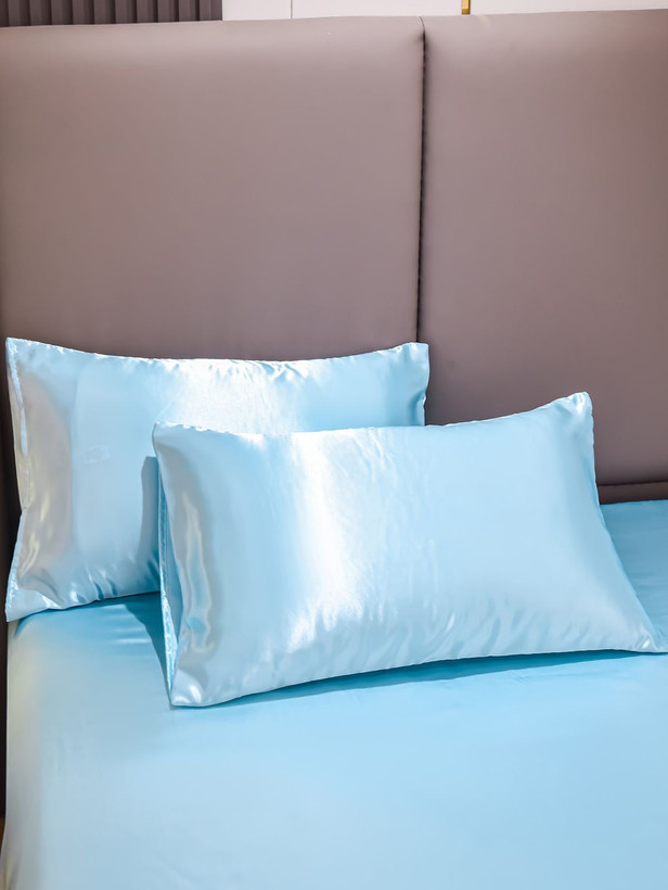 نیم ست روتختی ساتن ابریشم آبی آسمانی