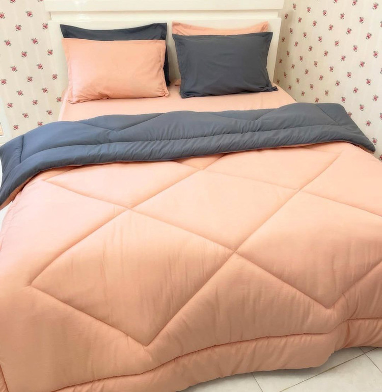 سرویس روتختی ساده (نخ پنبه)گلبه ای- طوسی