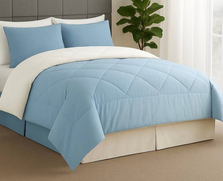 سرویس روتختی دو رنگ هتلی ساده رنگ (آبی اسمونی-شیری)